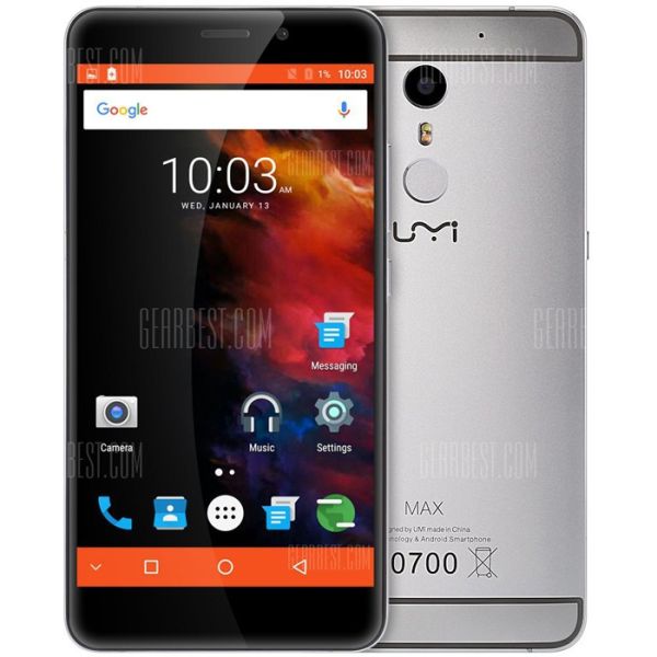 Смартфон Umi MAX в золотистом цвете корпуса в рамках акции от GearBest стоит $110 с купоном «MaxS4G». Это фаблет с большим экраном на 5,5 дюйма и поддержкой Full HD-разрешения, и поверх его лицевой панели установлено закаленное стекло Gorilla Glass 3. Umi MAX поставляется с 8-ядерным процессором на 1,8 ГГц (MediaTek Helio P10), 16 Гб встроенной памяти, модулем RAM на 3 Гб и металлическим корпусом. Имеется поддержка сетей 4G, есть сканер отпечатков пальцев и фотокамеры на 5 и 13 Мп, а для расширения объема ROM можно использовать карту microSD до 256 гигабайтов.