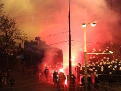 Столкновения начались недалеко от Национального стадиона. По словам пресс-секретаря главного коменданта полиции Мариуша Соколовского, группа хулиганов атаковала полицейских. Сотрудники правоохранительных органов изолировали их кордоном от других участников марша. Агрессивно настроенные молодые люди в масках забрасывали полицейских камнями, петардами и файерами. Те в ответ применяли водометы.