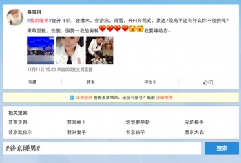 Несмотря на усилия местной цензуры, 11 и 12 ноября в китайской соцсети Weibo продолжились обсуждения «случая с шалью» на саммите АТЭС в Пекине. Жительницы Поднебесной назвали президента РФ Владимира Путина, подавшего теплую накидку первой леди Пэн Лиюань, идеалом потенциального мужа, а также запустили хэштеги «Заботливый Путин» (#普京暖男) и «Путин джентльмен» (#普京绅士).