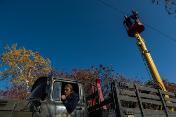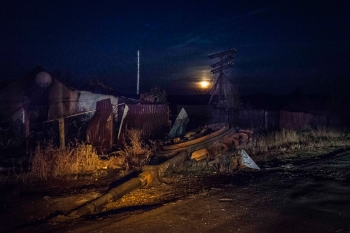 07. Рабочие чинят линию электростанции, которую тянут из России: ближайшая подстанция находится в городе Счастье, которое контролируется Украиной, и основная проблема в городе — нет поставок энергии, ближайшая подстанция под контролем ЛНР в Краснодоне. Проблема в том, что это лишь малая часть поставок, людям приходится тянуть новую ветку электроэнергии.