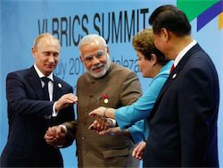 «Успешно выполняются решения по созданию в БРИКС собственных финансовых институтов, завершается формирование учрежденных на саммите в Форталезе Банка развития и пула условных валютных резервов», — сказал российский лидер. По его словам, новые возможности для совместного кредитования позволят расширить торговые и инвестиционные связи.