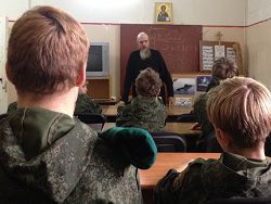 — Поступило требование сверху: на стрельбу вы можете посмотреть, но духовный вопрос может быть использован специфично, некорректно, — говорит Беляев. — Если бы вы были родительницей и пришли посмотреть, я бы был спокоен, но когда это касается прессы… Священник — представитель церкви, и то, что он говорит детям, не всегда может соответствовать тому, о чем может говорить церковь, потому что это его дети, он с ними пуд соли съел.