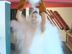 Емкость с жидким азотом! Температура — экстремальная: минус 196 градусов. Чтобы понять насколько это морозно — простой тест с розой. Несколько мгновений и живой цветок превращается в ледяной. Кажется невероятным, но именно эту жидкость Антон Шарыпов собирается вылить себе на голову. Купальная шапочка, плотные рукавицы, чтобы держать стеклянный сосуд и практически не задумываясь ученый выливает кипящую от холода жидкость на себя.