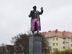 Чиновник сообщил на пресс-конференции: «Неизвестные лица осквернили ночью памятник советскому маршалу Ивану Коневу на площади Интербригады, перекрасив его нижнюю половину в розовый цвет». Он отметил, что памятник уже очищен от краски, полиция ведёт поиск вандалов.
