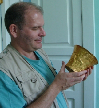 Аскольд Иванчик с золотым предметом из скифского кургана в Ставропольском крае. (руководитель раскопок А.Б. Белинский)