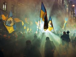 На Майдане с самого начала тоже можно было услышать и увидеть на плакатах фашистские лозунги, продолжает Аннет Юбара. «Слава Украине», «Героям слава», «Украина превыше всего» — это лозунги Организации украинских националистов времен Второй мировой войны, которая, как подчеркивается в статье, в значительной степени являлась фашистской организацией — «не говоря уже о настоящем культе Бандеры на западе Украины».