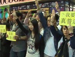 Вечером 28 ноября в районе Монгкок собралось множество горожан, недовольных грубыми действиями полиции, которая накануне задержала более 100 участников «зонтичного движения».