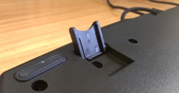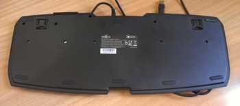 По традиции, клавиатура Genius Imperator оснащена двумя ножками для изменения угла наклона относительно поверхности стола. Ну а поскольку это игровая клавиатура, то ножки эти прорезинены, так что скользить она не будет. В нашем случае Genius Imperator была установлена сначала на лакированный деревянный стол, а потом и вовсе на стеклянный, и в обоих случаях скольжение замечено не было. Резиновые вставки также имеются на днище клавиатуры – их здесь ровно восемь.