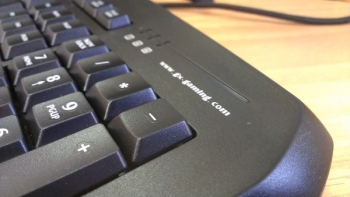 Каждая клавиша основного блока имеет традиционную форму и, что немаловажно, двухцветную маркировку – латинская раскладка здесь светло-розовая, а русские буквы окрашены в белый цвет. Такое решение оптимально для тех, кто пока не владеет «слепым» методом набора. Блок цифровых клавиш классический – тут нет никаких новшеств или особенностей. Над ним расположены стандартные индикаторы, подсвеченные, почему-то, ярко-красным светодиодом, порой мешающим своим светом.