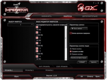 Запись команды осуществляется быстро и легко: нужно активировать кнопку записи и выбираем нужное действие на нужную кнопку. Каждый макрос можно отредактировать, изменяя задержку, или вовсе удалить. Отметим, что приложение Imperator Driver Setting можно не устанавливать, но в этом случае работать будут только основные блоки клавиш и мультимедийные кнопки.