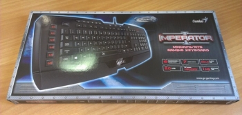 Клавиатура Genius Imperator, сама по себе в меру компактная, поставляется в очень крупногабаритной картонной коробке с довольно интересным и красивым дизайном. Упаковка дает представление о внешнем виде находящегося в ней устройства, а также кратко описывает все его главные особенности, которые могут пригодиться компьютерным игрокам. Сам картон плотный, что создает ощущение надежности и уверенность в том, что при транспортировке гаджет не пострадает.