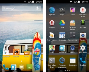 Разъем зарядки/подключения к ПК расположен также справа. Наушники подключаются сверху. На задней панели в левом верхнем углу расположена камера, немного выступающая над плоскостью панели. Рядом расположилась вспышка и логотип производителя. На передней панели над дисплеем расположена прорезь динамика. Несмотря на довольно широкую рамку экрана и приличную толщину телефон удобно лежит в руке и управляется большим пальцем. Сборка качественная, скрипов/люфтов не обнаружено.