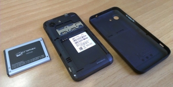Герой обзора оснащен съемным аккумулятором емкостью 1400 мАч, который спрятан под задней панелью. Также здесь расположены слоты для двух симкарт и одной карты памяти. Обе SIM-карты стандартного размера, мобильный Интернет 3G доступен только с SIM-карты, установленной в первый слот. Вторая имеет доступ только к сетям 2G. Карта памяти уже ставшего на сегодня стандартом microSD поддерживается объемом вплоть до 32 Гб. Ни один слот не доступен при установленном аккумуляторе, соответственно «горячая» замена SIM-карт и карты памяти не предусмотрена.