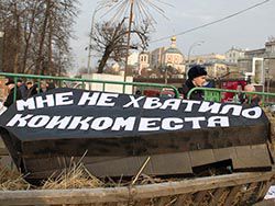 Всех пришедших на сегодняшний митинг встречал замечательный агитационный гроб от КПРФ с надписью «Мне не хватило койкоместа», пропускать который милицейское поначалу ни за что не хотело, но потом все-таки пропустило, после чего тов. Родин и тов. Рашкин лично впряглись в телегу и протащили его от Самотечной площади до пятачка у Уголка Дурова, где и проходил митинг.
