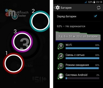 Время разговора и время работы с включенным дисплеем заявлены в районе 6 часов. При очень активном использовании смартфон придется заряжать каждый день. А вот энергосбережение в режиме ожидания в аппарате реализовано просто отлично, телефон смог продержаться около 4 дней без подзарядки при не очень активном использовании. Заявлено 180 часов работы в режиме ожидания, что близко к реальным цифрам.