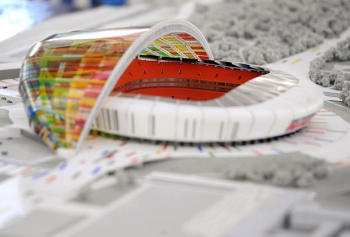 Макет нового стадиона к ЧМ-2018 по футболу в Волгограде Фото: Дмитрий Рогулин / ТАСС