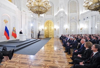 На оглашении послания присутствуют представители верхней и нижней палат парламента Фото: Дмитрий Азаров / «Коммерсантъ» Дошли до президента