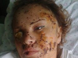 Множественные осколки в груди, перелом костей на лице, огромная кровопотеря, черепно-мозговая травма. Правая половина лица была просто «в кашу». Яна пробыла в поселковой больнице четыре дня, после чего медики приняли решение отправить её в Харьков: настолько тяжелым было состояние. «Думала, я умираю». Спасая ей жизнь, травматолог удалил правый глаз. Под щеку, где была пробита кость, вживили титановую пластину. На больничной койке в Харькове Яна провела два месяца.