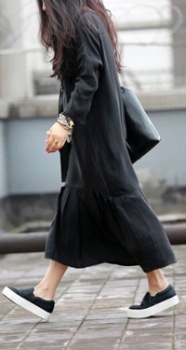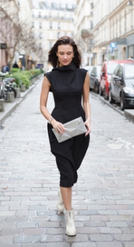 Надев рюкзак с платьем, в сторону шпилек уже поглядываем с презрением. Я всегда выбираю устойчивую, широкую платформу. Она зрительно удлиняет силуэт, смотрится не менее эстетично, чем высокий каблук, а походка становится более свободная и уверенная, чем на тонкой шпильке. Подходит любая обувь на толстой подошве: кеды, кожаные ботинки или упомянутые выше мужские фасоны.
