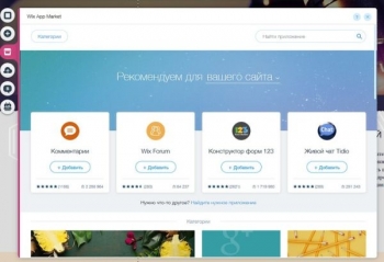 Из особого магазина приложений, плагинов и виджетов Wix App Market, расположенного слева, можно добавить веб-приложения, созданные сторонними разработчиками. Часто попадаются платные решения, но бесплатность Wix распространяется и на магазин, так что без труда можно найти виджет, реализующий требуемый функционал даром.