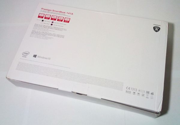 Коробка с Prestigio Smartbook 141A очень объемная, но в то же время легкая. Картон качественный, выдержал издевательства не самой ответственной транспортной компании. Сам ноутбук упакован достойно и защищен от прямых воздействий со всех сторон.