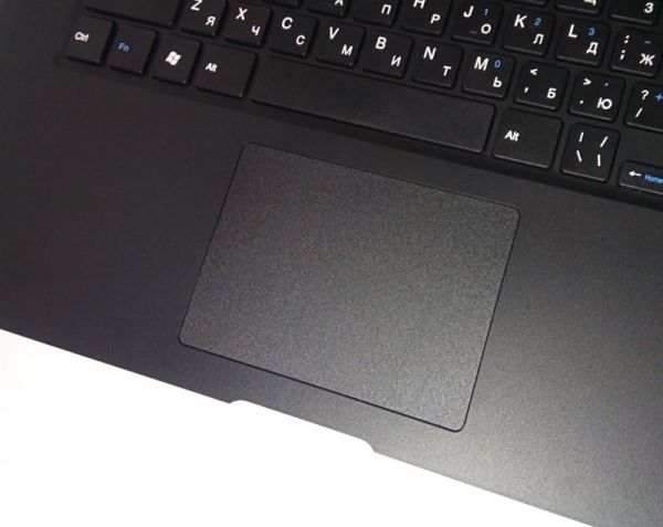 Корпус выглядит очень тонким, визуально тоньше заявленных 20 миллиметров, и этому определенно способствует черный цвет. Тачпад матовый, шероховатый, кнопки мыши спрятаны под основной панелью, то есть здесь царит минимализм. Индикация работы компьютера и включенных NumLock и CapsLock выполнена в виде небольших зеленых светодиодов, совершенно не отвлекающих от работы.