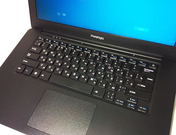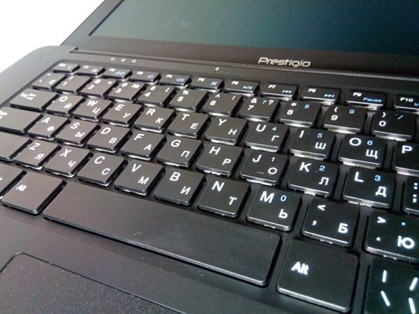 Боковые грани клавиатуры достаточно большие, что позволяет переносить Prestigio Smartbook 141A двумя руками и не бояться случайно нажать на ту или иную кнопку. То же самое касается пространства под клавиатурой – оно отлично выверено, и к кнопкам не нужно тянуться, руки находятся в своем естественном положении.