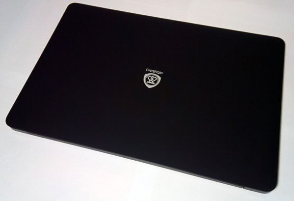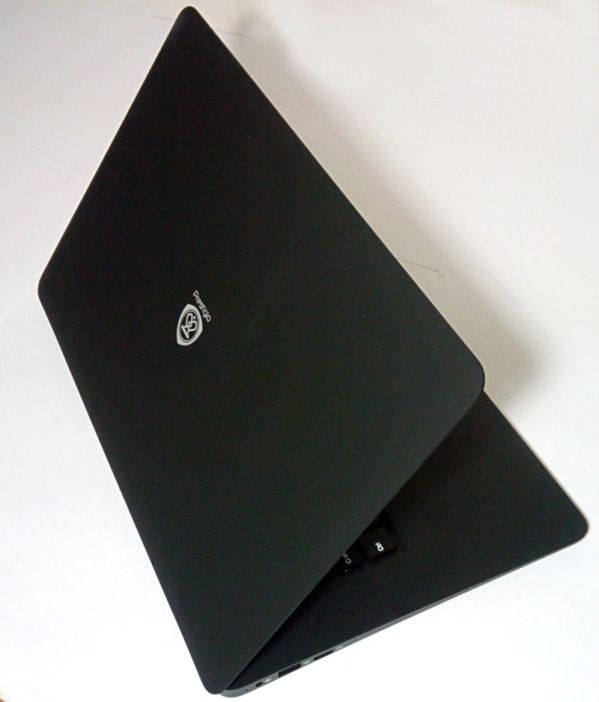 Нам на тест Prestigio Smartbook 141A достался в черном исполнении, притом черный он абсолютно весь, за исключением надписей на кнопках клавиатуры и подписей рядом с интерфейсами. Корпус полностью пластиковый, металлических элементов нет, но зато есть приятное на ощупь едва шероховатое покрытие, напоминающее soft touch, на верхней крышке и нижней поверхности. На первый взгляд оно выглядит весьма качественным, и нет сомнений в том, что оно выдержит не один год эксплуатации и не сотрется.