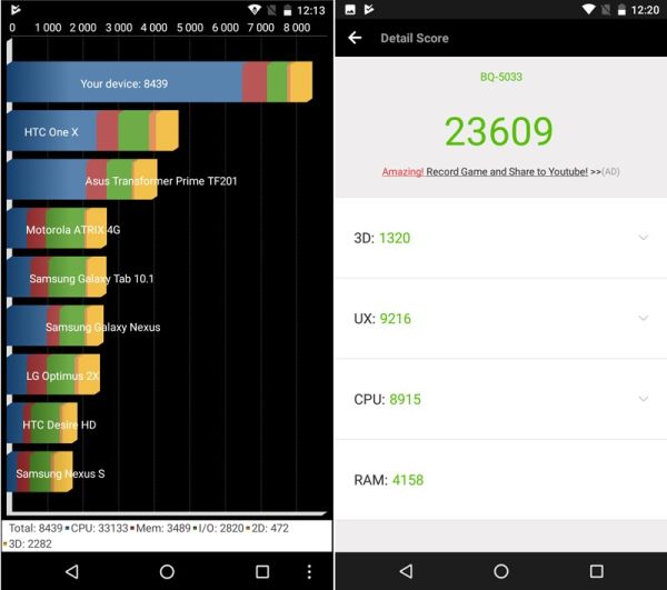 Между тем, BQ Shark никогда и не был игровым смартфоном – это защищенный аппарат начального уровня для тех, кто постоянно находится в не самых благоприятных для техники условиях, и тех, кто желает подчеркнуть свою мужественность. В бенчмарках он показывает вполне ожидаемые результаты: 23609 баллов в AnTuTu, 8439 в Quadrant Standard, 1164 балла в GeekBench и 1967 баллов в Ice Storm Extreme от 3DMark.