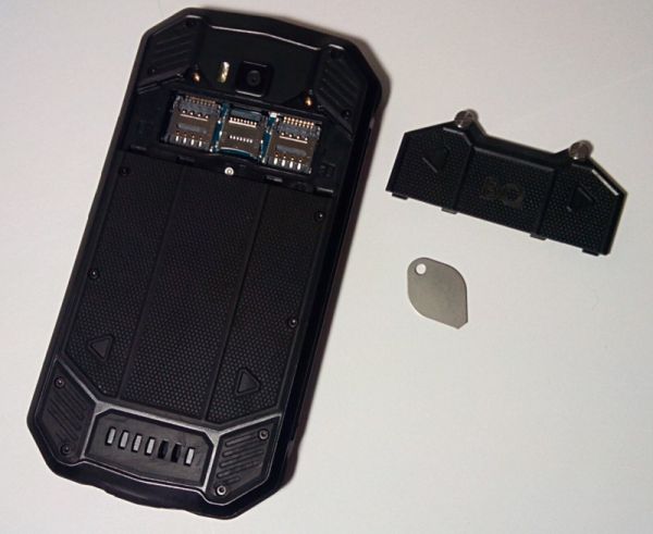Что касается крышки слотов под карты, то даже при открученных винтах она так просто не снимется благодаря плотной посадке. Это означает сниженную до нуля вероятность попадания под нее капель воды. Для этого же и аккумулятор сделан несъемным – чтобы минимизировать риск повреждения от Н2О.