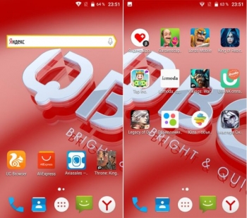 На BQ Strike Power установлена современная ОC Google Android версии 7.0 Nougat, на момент релиза смартфона одна из самых последних. В данном случае имеем дело с дополнительным интерфейсом Яндекс.Лаунчер, запускающимся по умолчанию и потребляющим много оперативной памяти.