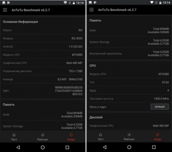 На момент проведения тестирования BQ Shark оценивался производителем в 7500 рублей, что при нынешнем курсе составляет в районе 130 американских долларов. Рекомендуемая стоимость аппарата может быть найдена на официальном сайте BQ и в Яндекс.Маркете, и там же мы обнаружили детальную информацию об аппаратной начинке смартфона, в кратком варианте продублированную на коробке и в комплектной инструкции.