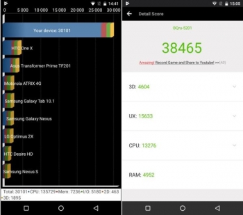 Бенчмарки Quadrant Standard и GeekBench тоже высоко оценили способности смартфона – итоговые оценки вы можете видеть на скриншотах, и из всех протестированных компонентов лучше всего показали себя именно ядра процессора.