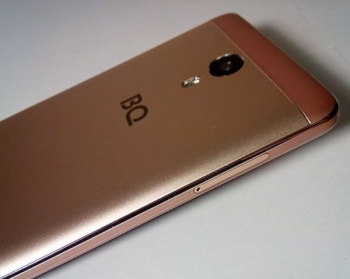 В плане дизайна особых изысков у BQ Space нет – в нем реализована уже проверенная временем схема расположения всех элементов, разве что сканер отпечатков пальцев, который в сегменте «до 15000 рублей» чаще всего встречается на задней крышке, здесь размещен под экраном. Что важно, выбор цвета корпуса в этом смартфоне влияет и на оттенок лицевой панели – если аппарат выкрашен в золото, то и она тоже золотая, а не белая, как у Apple iPhone. Торцы тыльной панели отделаны хромированным пластиком и очень быстро пачкаются, как и вся передняя часть корпуса, задняя же крышка, напротив, отпечатки пальцев не собирает.
