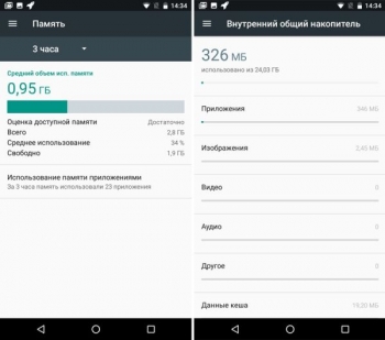 За такую «кастомизацию» прошивки ставим BQ Space минус. Что касается памяти, то после первой загрузки в смартфоне остается доступно 1,9 Гб оперативной памяти из 3 Гб и около 24 Гб дискового пространства из 32 Гб. Такого объема RAM с лихвой хватает для запуска сразу нескольких тяжелых приложений, и ничего не удаляется из памяти, да и сам по себе смартфон работает очень быстро.