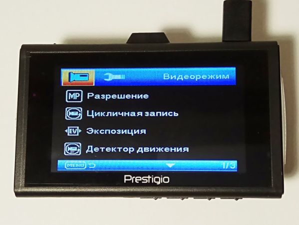 На основной экран выводятся все текущие параметры записи, включая разрешение, пиктограмму включенного микрофона и источник питания (бортовая сеть или аккумулятор). Также можно посмотреть дату и время и при необходимости подкорректировать их. Словом, с освоением программной части проблем ни у кого не возникнет.