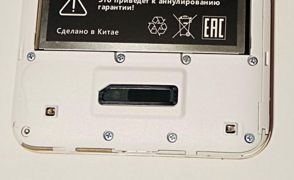 Тыльная часть корпуса отдана под основную камеру со вспышкой, сканер отпечатков пальцев и решетку внешнего динамика; под ней видим несъемный аккумулятор больших размеров, два слота под SIM-карты и отдельный слот под microSD. Горячая замена в данной модели не предусмотрена.