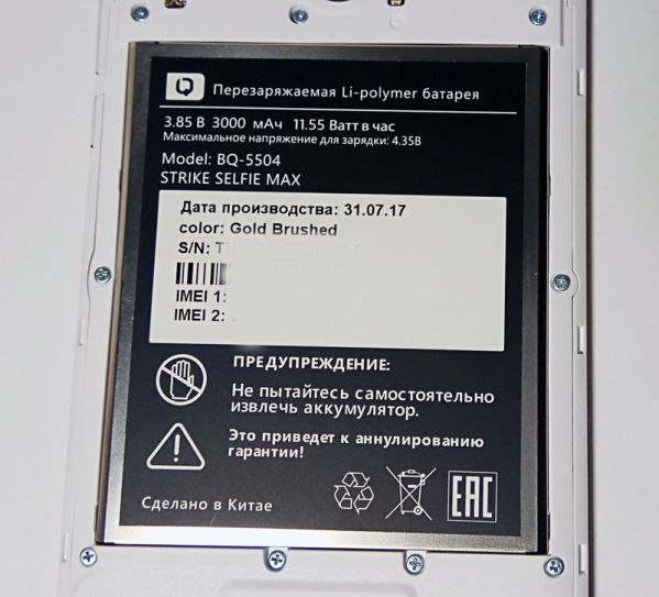Система питания BQ Strike Selfie Max – это литий-полимерная несъемная батарея на 3000 мАч. В режиме только разговоров по сетям GSM смартфона хватает на два полных дня, и в конце второго еще остается 10-15% заряда.