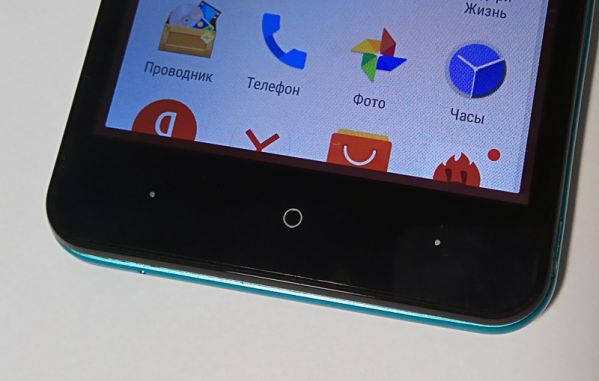 Лицевая панель в нашем случае черная, с отдельными сенсорными кнопками под экраном, за что BQ большое спасибо, ведь в последнее время они встречаются все реже, и даже у самой BQ есть масса моделей без них, например, Strike Selfie Max.