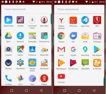 Интерфейс у ОС стандартный, но есть много сторонних приложений, которыми BQ, как это ни печально, снабжает все свои смартфоны: их 9, удалить можно лишь одно, а остальные получится лишь отключить, если нет рут-прав. Последние получить в данном случае непросто: модель новая, и даже KingoRoot на пару с KingRoot справиться с этим не смогли.