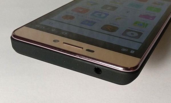 Micromax Canvas Juice A1 выполнен в стандартном форм-факторе, то есть это сенсорный моноблок без аппаратной клавиатуры. В золотой цвет корпуса здесь окрашены и лицевая, и тыльная панель, что значительно украшает экстерьер, а торцы имеют черный окрас и сделаны из специального пластика, устойчивого к царапинам и имеющего определенную текстуру. Это своего рода нативный защитный бампер, и в сочетании с золотым оттенком такое решение смотрится очень гармонично.