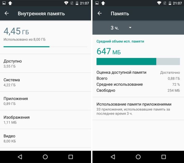 Многие эти приложения работают в фоне, ничем себя не выдавая, но потребляя ОЗУ, в результате чего свободной оперативной памяти после первого запуска остается около 250 Мб из 1024 Мб, а этого в 2017 году уже совсем мало. Внутренней памяти тоже немного, пользователю доступно лишь 3,55 Гб из 8 гигабайтов, так что карта microSD потребуется обязательно.