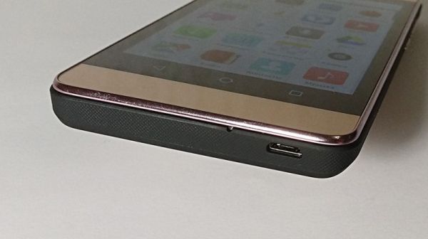 В смартфоне применено практически полностью стандартное расположение элементов, и исключением являются лишь кнопки управления, переехавшие с нижней грани лицевой панели прямо на экран. В остальном все привычно, так что переучиваться не потребуется: микрофон и слот microUSB для зарядки помещены снизу, вход под наушники будет найден на верхнем торце, а кнопки питания и регулировки громкости выведены на правую грань.