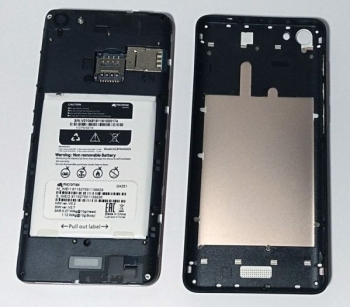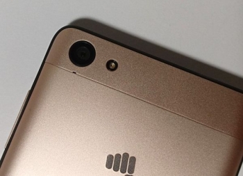 Передняя панель Micromax Canvas Juice A1 быстро покрывается отпечатками, но легко очищается практически любой тканью, а металлический задник практически не пачкается. Под крышкой смартфона находится несъемный аккумулятор, на котором отсутствует информация о его емкости, а чуть выше можно увидеть камеру, вспышку и три раздельных слота – microSD и два SIM.