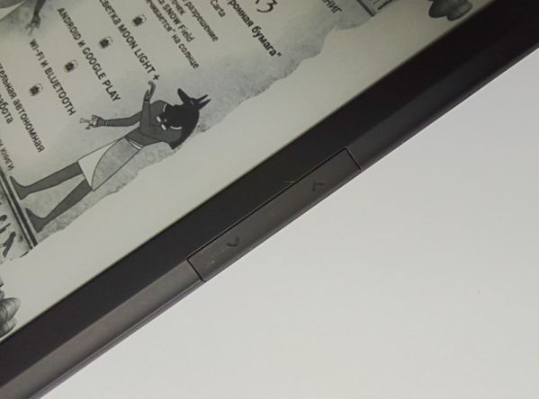 Заливка экрана светом равномерная, без пересветов и теней от светодиодов. На наш взгляд, Moon Light+ является очень удачным решением, и Onyx Boox следует задействовать именно этот вариант подсветки в последующих поколениях своих ридеров, включая 6-дюймовые модели.
