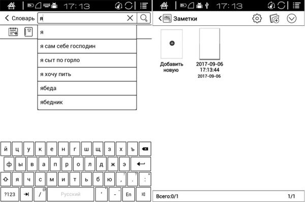 По умолчанию в книге, помимо браузера, присутствует удобный словарь для поиска значений новых слов на русском и английском языках, а также приложение для просмотра статистики чтения. Пригодится оно всем, кто хочет начать больше читать. Из стандартного набора Android есть калькулятор, клиент электронной почты и календарь, и дополнительно книгу можно использовать в качестве своего рода блокнота при помощи приложения «Заметки». Пользоваться всем перечисленным очень удобно ввиду наличия сенсорного экрана, который, к тому же, очень быстро обновляется.