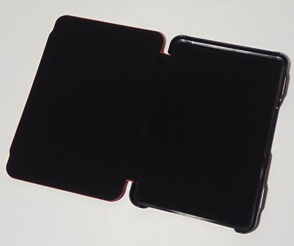 Такой выбор материалов направлен одновременно и на красоту исполнения, и на сохранение товарного вида книжки, чтобы ее корпус не соприкасался ни с чем твердым. В чехле ридер держится надежно за счет прочных креплений-уголков из пластика, в крышку чехла встроены магниты, которые при закрытии активируют датчик Холла в самом устройстве, что приводит к переводу его в спящий режим и экономии заряда батареи. При открытии книга пробуждается автоматически.