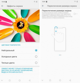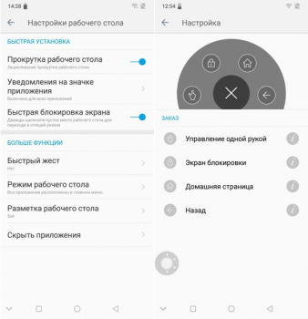 В дополнение к перечисленному есть поддержка жестов и умных жестов, дополнительная виртуальная кнопка для быстрого запуска наиболее востребованных функций и приложений и возможность настройки сетки рабочего стола. Помимо этого, есть отдельное приложение с темами оформления, но их пока всего четыре, и возможность скачивания новых тем пока не предусмотрена. Они меняют стиль иконок приложений, изображение рабочего стола и оформление верхней шторки.