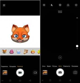 Фотокамеры в BQ Aurora имеют массу возможностей и тонких настроек, а также встроенные фильтры и даже FaceMoji, аналог «яблочной» функции AniMoji. FaceMoji работает при помощи фронтальной камеры и датчика Face ID и вполне неплохо справляется со своими обязанностями. Есть несколько виртуальных персонажей, и алгоритмы улавливают движения глаз, бровей и губ. Не хватает лишь языка, но лучшее – враг хорошего. Можно записывать короткие видеоролики с персонажами и затем делиться ими в социальных сетях или мессенджерах.