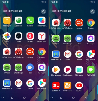 Предустановленных нештатных приложений в смартфоне относительно много – семь, из них пять можно удалить, а две программы от Яндекса вшиты в саму ОС. В комплекте имеется полная версия антивируса Dr. Web, но ее нужно активировать с предварительной регистрацией, и только на 14 дней бесплатного пользования. Поэтому легче удалить ее и установить базовую бесплатную версию Dr. Web Light без регистрации и активации.